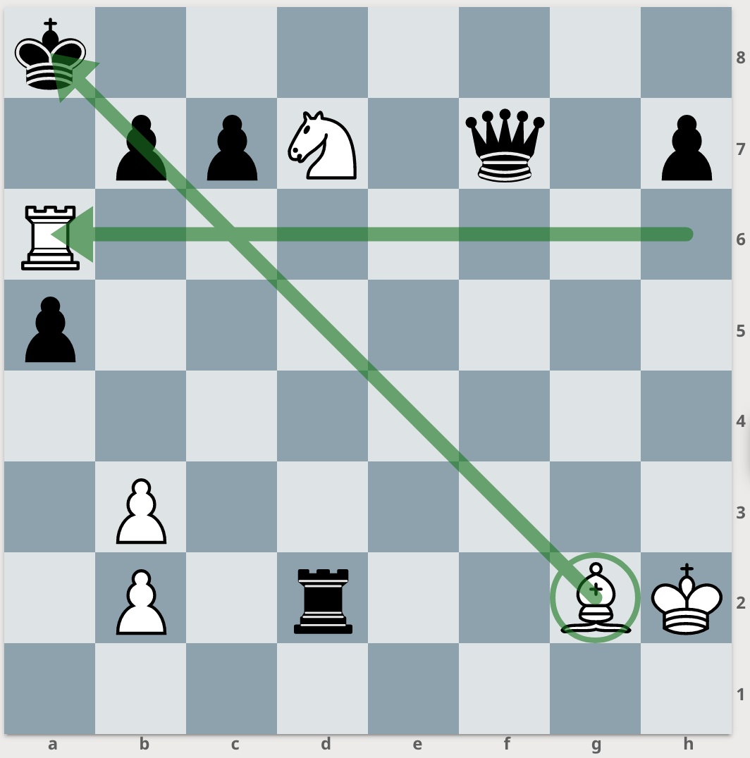 PS : La réponse d’hier était Ta4 ou Ta1 (deux réponses possibles). Cela cloue le Fou qui s’il voulait s’aventurer à prendre la tour restante, dévoilerait la Tour a8, et il ne resterait plus aux blancs qu’à prendre cette Tour, faire échec et bientôt échec et mat. La Tour est donc imprenable après un des deux coups cités. Tout ça pour vous montrer que parfois on cherche des échecs et mats, et parfois il faut juste trouver une combinaison pour s’en sortir.
