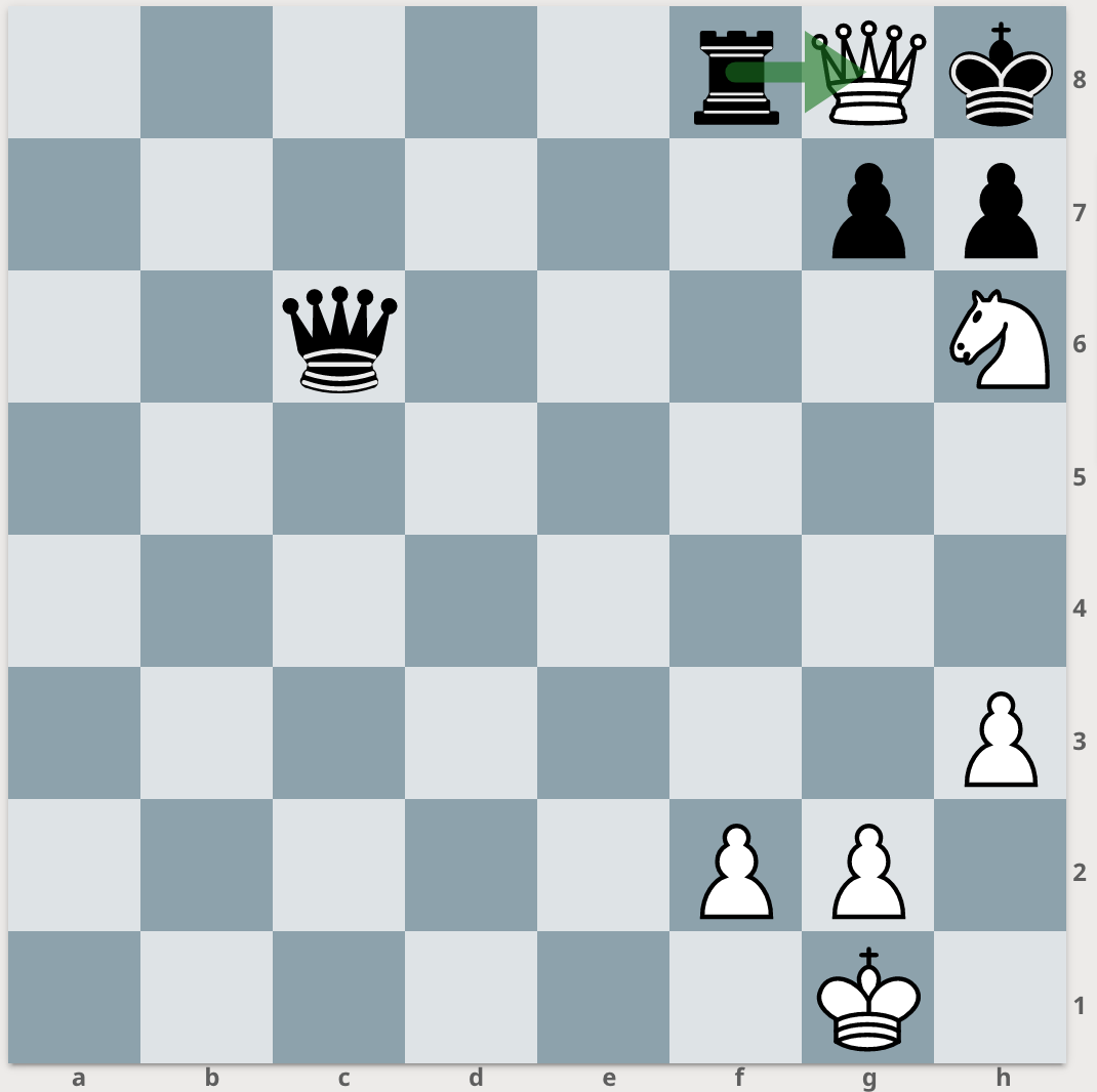 La promotion (du pion qui arrive au bout de l’échiquier et se transforme) semble bien comprise, mais au cas où, on vous donne aussi le lien vers notre article : https://www.apprendre-les-echecs-24h.com/blog/debuter-aux-echecs/promotion-aux-echecs/